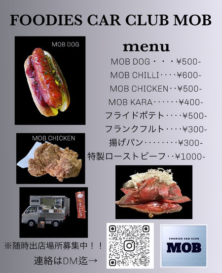 FOODIE CAR CLUB MOB東山 大樹2023年10月25日読了時間: 1分更新日:2023年10月28日 都内でキッチンカー出店中!! ホットドッグ🌭やフライドポテト🍟などをを提供しています! 出店場所を随時募集しています!お仕事の連絡はDMで!! お店の情報を更新中!!確認よろしくお願いします🙇♀️